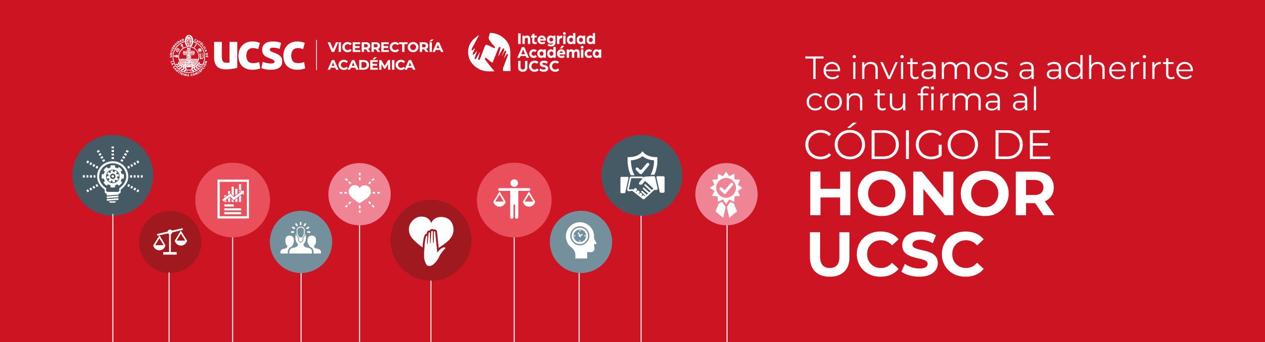 "Como miembro de la comunidad de la Universidad Católica de la Santísima Concepción, me comprometo a actuar conforme a los valores de honestidad, veracidad, confianza, justicia, respeto y responsabilidad en el proceso formativo, la investigación, la innovación y el aporte a la sociedad. Asimismo, me comprometo a respetar a todos los miembros de la comunidad universitaria, contribuyendo con mi accionar a una cultura institucional de Integridad Académica, acorde a la misión de la UCSC y en conformidad a los principios que sustentan todo su quehacer, reconociendo a la educación y formación como pilares fundamentales en la construcción de esta cultura. Del mismo modo, me comprometo a contribuir activamente a la creación de un ambiente académico seguro y colaborativo, donde todos los miembros se sientan valorados.”